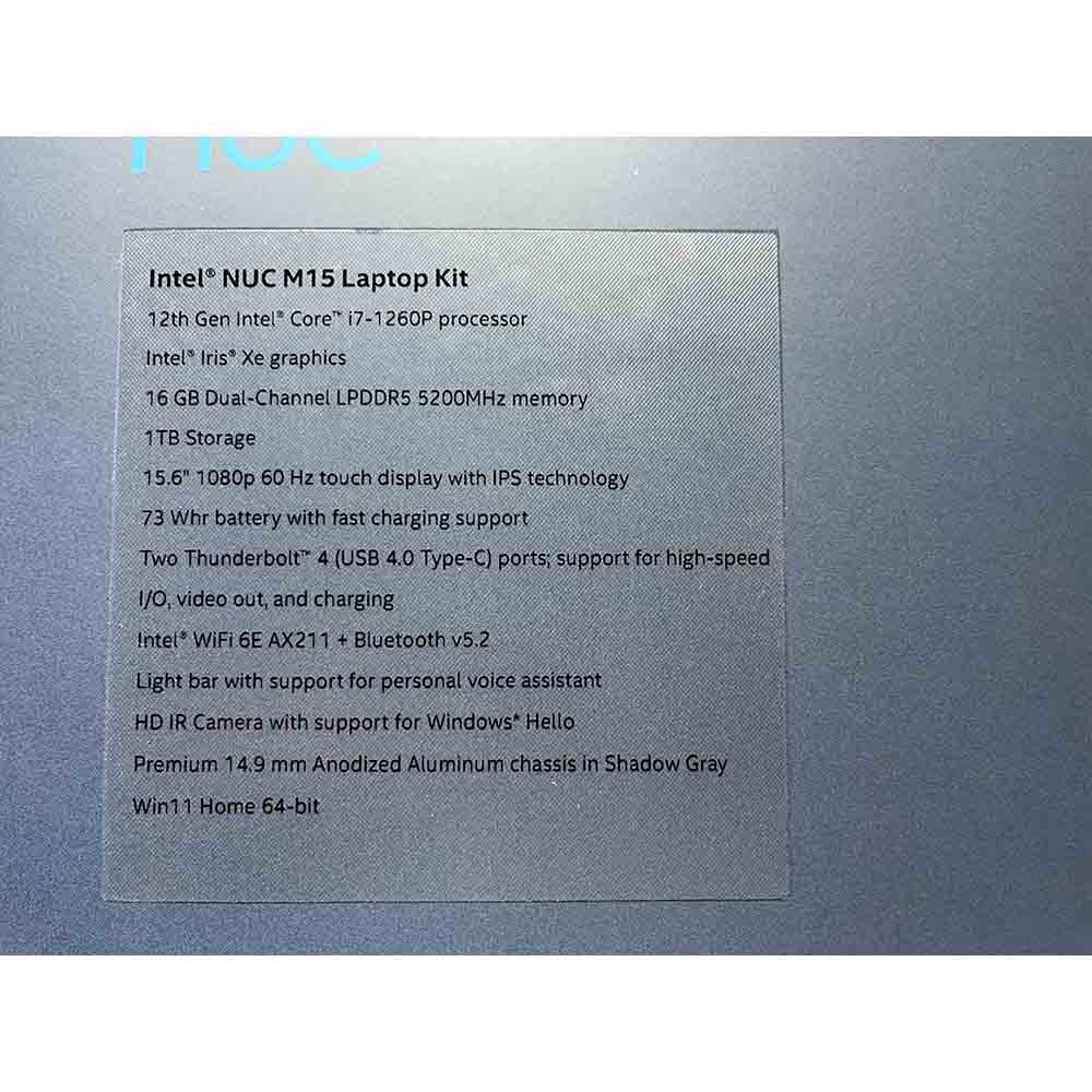 Intel NUC M15 Laptop Kit LAPRC710 Intel Core i7-1260P with Iris Xe 16GB