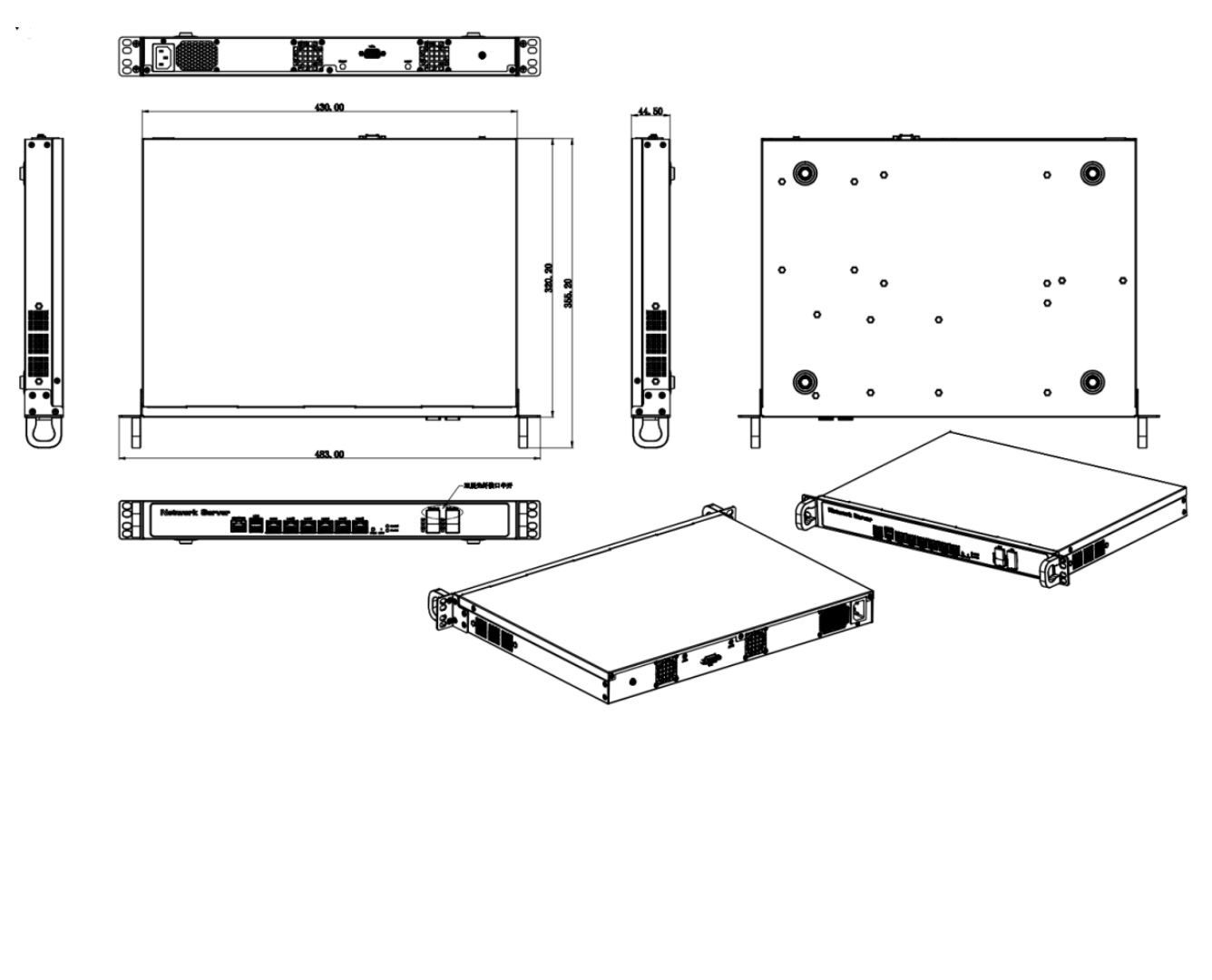 Chassis Material / structure 1U standard chassis, high-quality galvanized