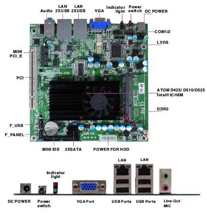 | Atom D425 Mini-ITX Motherboard D425ZR with ATOM D425 and NM10 The Desktop Board D425ZR is designed to unleash the power of the new Intel Atom processor D425 which supports the new revolutionary two-chip layout. This new chipset layout reduces the package footprint by 70 percent, enabling easier routing and better heat flow. The Intel NM10 Express Chipset also provides additional flexibility and upgradability with two slots of single channel DDR3 memory at 800/667 MHz supporting up to 4GB maximum. With breakthrough low-power silicon, the Desktop Board D425ZR can be used with a passive thermal solution based on the recommended boundary conditions. The Desktop